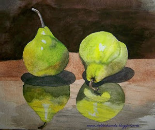 I came across this valley in my dream? An abandoned shack torn by snowy wind standing amongst the mist...mysterious and haunted. The valley behind covered with thick fog and the conifers standing tall like sentinels...oof...seems I'm getting too poetic. Painting this picture in watercolor was a tedious job..I tried repeatedly to come up with this. Hats off to the photographer whose picture I referred to...