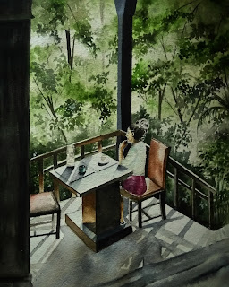 Off late, I am kind of bitten by the bug of making watercolor portraits...I feel that I have a long way to go in this field and need a hell lot of practice.. Here, at first, I tried with a photograph of my hubby's junior and then my fellow artist friend. Need to do a lot but I have become quite lazy...😐😐